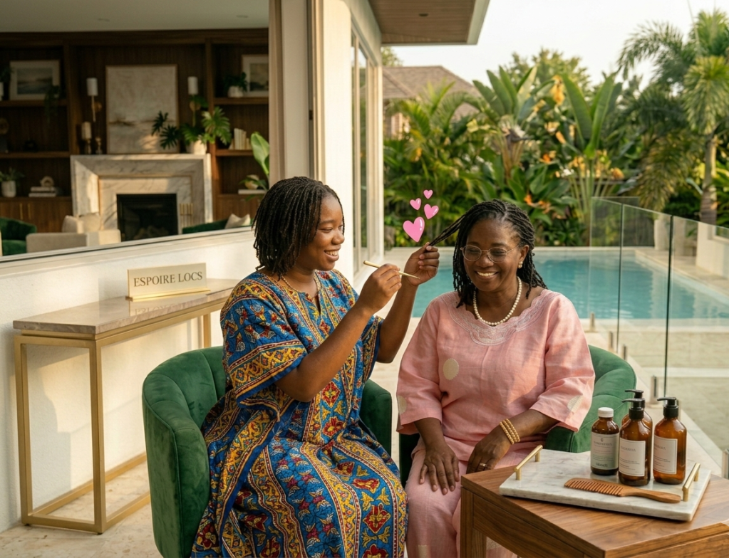 De l’erreur à l’expertiseFace aux prix « salés » des salons et à mes locs qui partaient en fumée, j’ai décidé de prendre les choses en main. Je suis devenue une élève de « l’université YouTube ». J’ai pratiqué, encore et encore, sur les membres de ma famille.